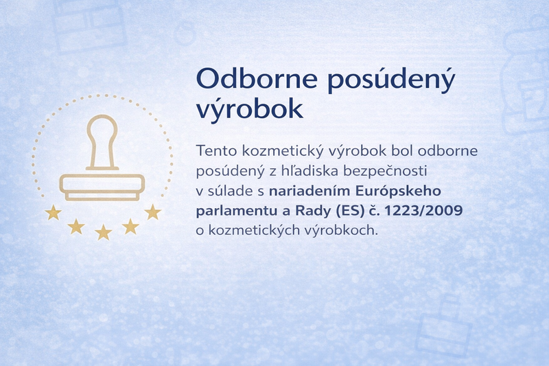 Tento kozmetický výrobok bol posúdený nezávislým odborníkom v súlade s nariadením Európskeho parlamentu a Rady (ES) č. 1223/2009 o kozmetických výrobkoch.
